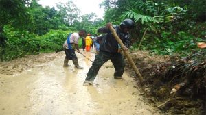 Melihat hal tersebut Kodim 1706/Fakfak dengan cepat menggerakkan personelnya untuk membantu masyarakat setempat untuk membuka ruas jalan yang tertimbun sehingga aktifitas masyarakat dapat normal kembali.