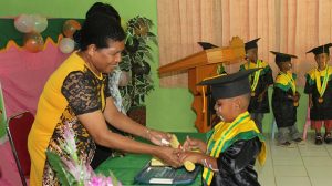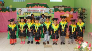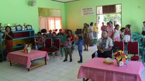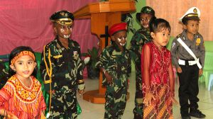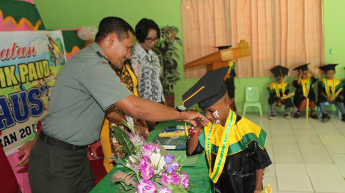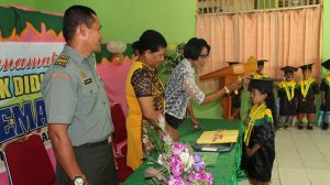 Sorong – Penamatan Anak Didik Paud Emaus Makorem 171/PVT oleh Ketua PHMJ GKI Emaus Makorem 171/PVT Pdt Hana Sahulata, S.Th, dan dihadiri oleh Kabintal Korem 171/PVT Lettu Inf Abner Salawati, S.Th, Wadantim Intel Korem 171/PVT Lettu Inf Yunister Tegel, Pengelola Paud Ibu A. Mofu, serta orang tua murid Paud Emaus bertempat di Paud Emaus Makorem 171/PVT, Jl. Pramuka, No 1, Sorong-Papua Barat, Selasa, (05/06/2018).