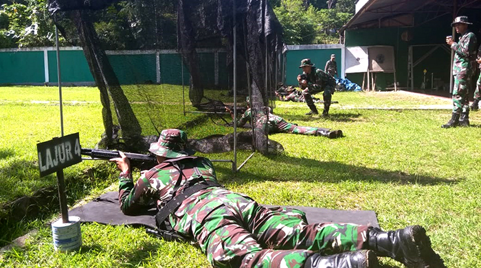 Dalam latihan menembak senjata ringan tersebut menggunakan senjata Pistol FN 45 untuk golongan Perwira dan Bintara bagi yang menduduki jabatan tertentu, serta senapan SS1 V1 bagi Bintara dan Tamtama dengan jarak 100 Meter sikap tiarap, jarak 25 Meter senjata Pistol FN 45