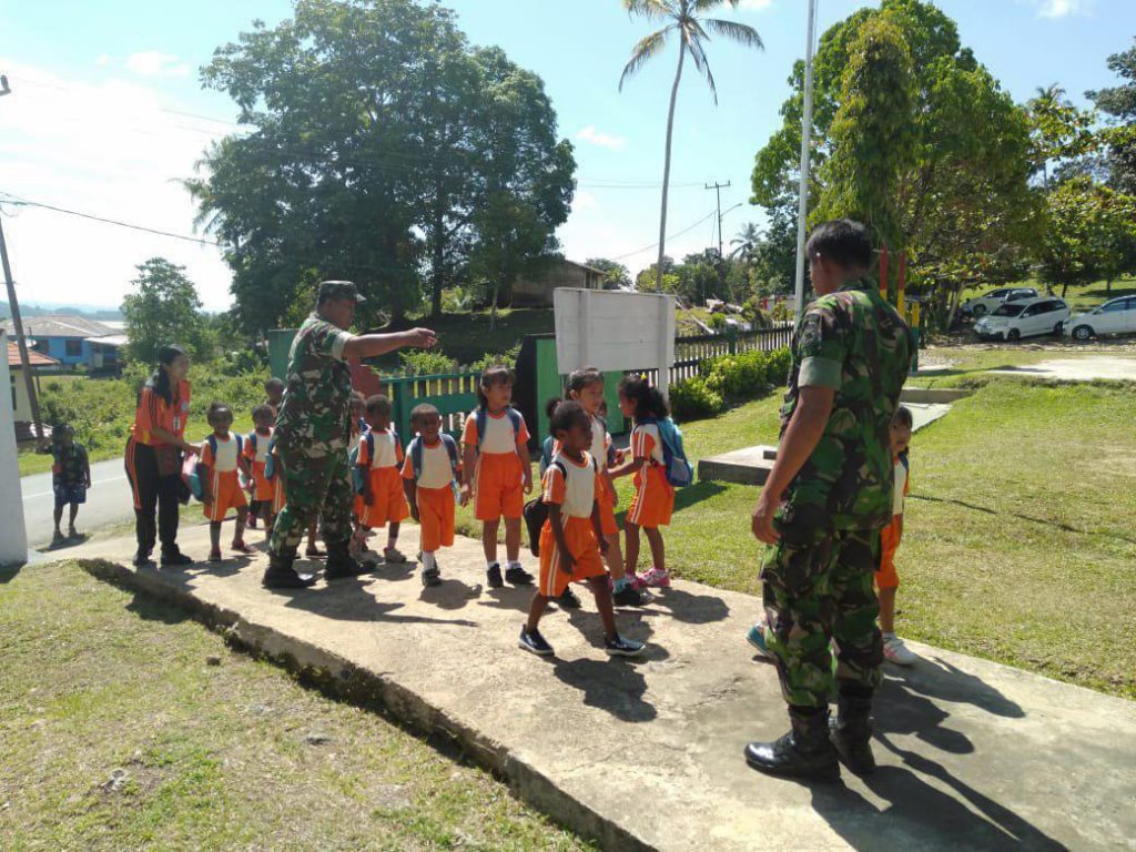 Lanjut Danramial, “Tentara Nasional Indonesia juga siap menerima putra-putri terbaik Indonesia untuk dididik menjadi Patriot-patriot Bangsa, Yang punya jiwa nasionalisme tinggi, cinta tanah air dan mampu menjadi penjaga keutuhan Negara Kesatuan Republik Indonesia ini untuk selama-lamanya, termasuk adik-adik ini semua”,pungkas Danramil.