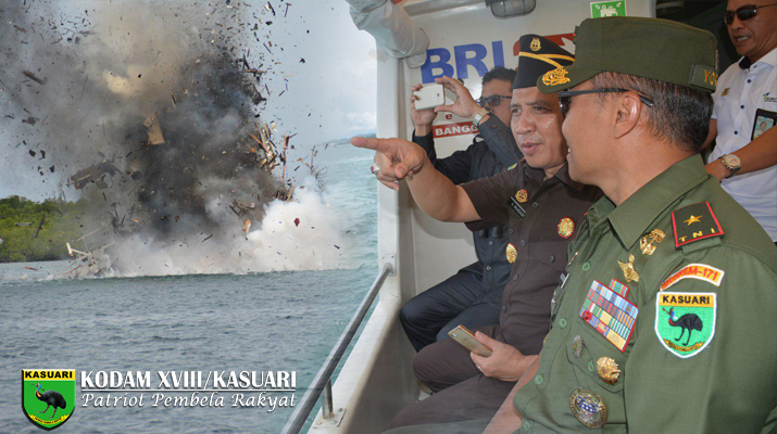 Menteri Susi sebagai Komandan Satgas 115 hadir dan memimpin langsung penenggelaman dari pantai Morela ambon, Menteri Susi memberikan Komando penenggelaman melalui video conference melalui live streaming. Penenggelaman dilakukan secara berurutan  sesuai dengan urutan yang telah ditentukan, untuk menghancurkan kapal digunakan bahan peledak tetapi itu semua sudah diperhitungkan agar peledakan tersebut tidak mengganggu lingkungan hidup, kawasan konservasi laut dan juga keamanan navigasi laut.  (Ksr)