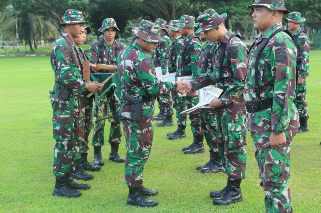 Sorong – Komandan Batalyon Raider Khusus 762/VYS Letkol Inf Doddy Yudha, S.I.P., M.Tr(Han). Memimpin upacara penyerahan piagam penghargaan Yongmoodo Bertempat Di lapangan Upacara Yonif RK 762/VYS Sebanyak 50 Orang Personel Batalyon Raider Khusus 762/Vira Yudha Sakti yang mengikuti upacara penyerahan piagam penghargaan,Senin (27/05/2019).