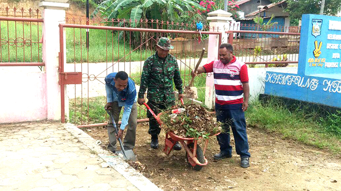 Pada pelaksanaan itu Serda Agus Hariyanto menyampaikan kepada masyarakat  tentang pentingnya dalam hidup bermasyarakat memiliki sikap gotong – royong yang tinggi, agar pekerjaan yang berat terasa ringan bila kita melakukanya bersama sama meskipun dengan alat seadanya, disamping itu pula kegiatan seperti ini dapat mempererat hubungan silahturohmi antara TNI – masyarakat.