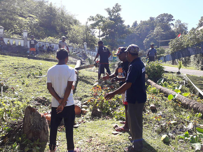 Selain untuk merapikan lingkungan sekitar penebangan pohon kelapa ini dilaksanakan untuk menghindari kecelakaan tertimpanya Buah Kelapa yang sudah tua terhadap warga yang melaksanakan aktifitas dibawah pohon tersebut.