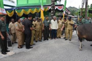 Kasrem 171/PVT Kolonel Inf Dian Sudiana S,E menghadiri Acara Penyerahan Bantuan Hewan Qurban dalam Rangka Hari Raya Idul Adha 1439 H secara Simbolis kepada Masjid dan Mushola yang ada dilingkungan Pemerintah Kota Sorong yang dipimpin oleh Wakil Walikota Sorong Dr. Hj. Pahimah Iskandar turut hadir Sekda Kota Sorong Drs. Welly Tigtig Weria, Plt Kepala Dinas Sosial Kota Sorong Drs. Wilhelmus Asmuruf, Pasi Korem 171/PVT dan para Pengurus Masjid dan Mushola dilingkungan Pemerintah Kota Sorong bertempat di Halaman Masjid Al Mujahidin Korem 171/PVT Jl. Pramuka No.1 Kota Sorong- Papua Barat, Senin (20/08/2018).