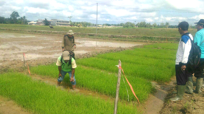 Dalam kesempatan itu Penyuluh pertanian juga menjelaskan kepada Babinsa dan petani cara melakukan penyemprotan hama. Membasmi penyakit dan obat yang digunakan untuk membasmi berbagai jenis hama yang menyerang tanaman padi.