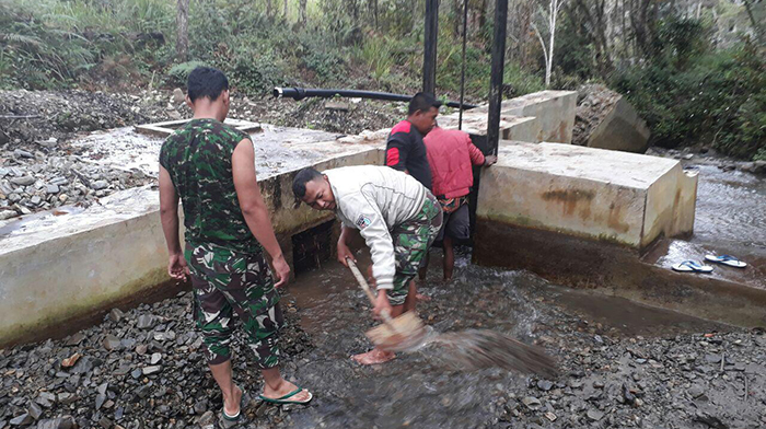 Peran Besar Koramil Anggi Bersihkan Bak Penampungan Air di Distrik Anggi