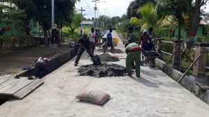 Raja Ampat – Dengan tekad kemanunggalan TNI-Rakyat, anggota Koramil1715-01/Waisai Kodim 1715/RA Kopda M. Yamin Babinsa Kampung Warimak Diatrik Tiplol Kabupaten Raja Ampat bersama dengan warga masyarakat Kampung Warimak melaksanakan karya bakti dengan sasaran perbaikan serta pembuatan saluran air (selokan) di pinggir jalan, Kamis (18/10/2018).