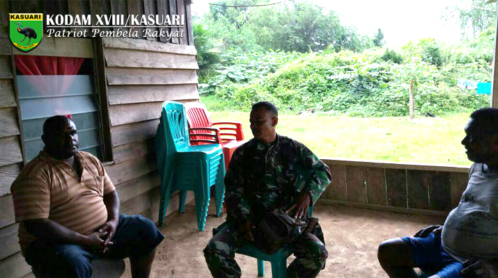 Sorong – Pelda Gianto Anggota Koramil 1704-01/Sorong Timur melaksanakan komunikasi sosial dengan mendatangi rumah Bapak Yordam Os, ketua RT 02 kelurahan Aimas, Distrik Aimas, Kabupaten Sorong, Senin (06/03/17)