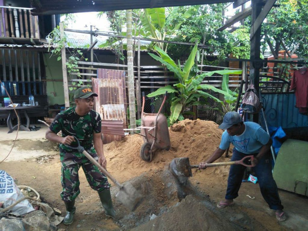 Babinsa mengatakan, pelaksanaan gotong royong bersama masyarakat ini merupakan salah satu wujud nyata dan peran aktif serta sumbangsih TNI khususnya aparat kewilayahan kepada rakyat di daerah dan tugas pokok TNI membantu pemerintah daerah diantaranya membantu percepatan pembangunan Kampung seperti ini.