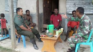 Sorong – Untuk memupuk dan mempererat tali silaturahmi antara TNI dengan Rakyat khusunya Aparat Teritorial, Danramil 1704-06/Beraur Kapten Inf Efendy Muchlison didampingi Babinsa Kampung Klamintu, Km. 80, Kabupaten Sorong, melaksanakan anjangsana dengan mendatangi Tokoh Adat Bapak Frans Hu, Tokoh Agama Bapak Benny Hu dan Tokoh Masyarakat Bapak Yakub Ulala diwilayah binaan, Jumat (14/09/2018).