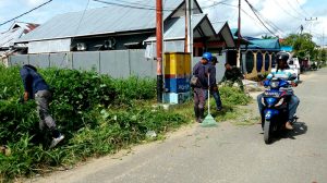 Sorong – Kebersihan lingkungan adalah kegiatan menciptakan atau menjadikan lingkungan yang bersih, indah, asri, nyaman, hijau dan enak dipandang mata. Kebersihan lingkungan tentu tidak satu tempat saja, seperti halnya kebersihan kegiatan gotong royong membersihkan rumput disepanjang RT/RW 003/002 jalan Olom Fagu Kelurahan Klawalu, Kota Sorong yang dilakukan Babinsa Koramil 1704-01/Sorong Timur Serda Susiswo bersama warga setempat, Kamis (08/02/18).