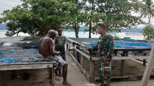 Kaimana – Bintara Pembina Desa (Babinsa) Koramil 1713-01/Kaimana Serda Abdul Takim melaksanakan kegiatan Komunikasi Sosial (Komsos) di Kampung Sisir Distrik Kaimana Kabupaten Kaimana, Senin (17/09/2018).
