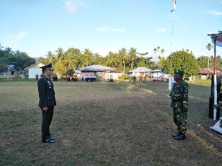 Distrik Teluk Arguni serda E Ekowali dan Koptu Roy R selaku Babinsa kp Boufer Distrik Teluk Arguni Koramil 1713-03/Teluk Arguni Kodim 1713/Kaimana Mengikuti upacara Detik- Detik Proklamasi dalam rangka peringatan hari Ulang Tahun Kemerdekaan Republik Indonesia ke- 73 dilapangan Distrik Teluk Arguni Kab Kaimana,Senin (20/08/2018).
