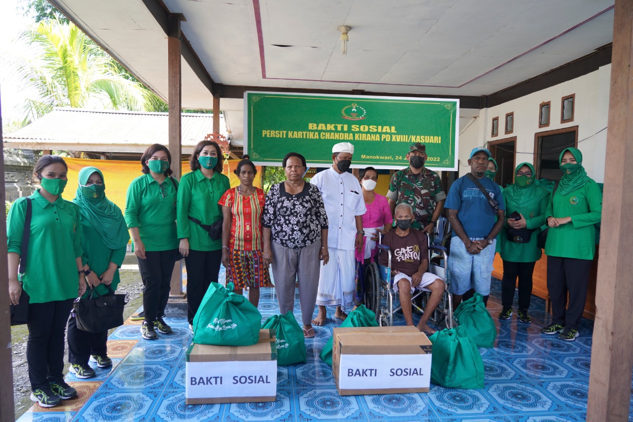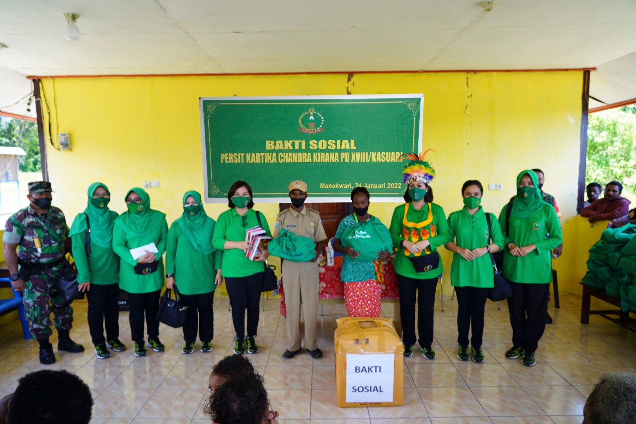 Kegiatan yang bertajuk bakti sosial (Baksos) ini dipimpin langsung oleh Ketua Persit KCK Daerah XVIII/Kasuari, Ny. Ade Nyoman Cantiasa didampingi para ibu-ibu Pengurus Persit KCK PD XVIII/Kasuari lainnya.