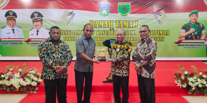 Teluk Wondama. kodam18kasuari.tni-ad.mil.id – Salah satu rangkaian kunjungan kerjanya ke wilayah satuan jajaran Kodam XVIII/Kasuari, Pangdam, Mayjen TNI Gabriel Lema, S.Sos., menggelar ramah tamah sekaligus bertatap muka dengan para unsur Forkopimda, para Tokoh Agama, Adat dan Masyarakat yang berada di Kabupaten Teluk Wondama, Rabu (8/6/2022).