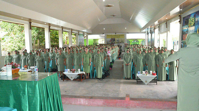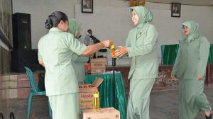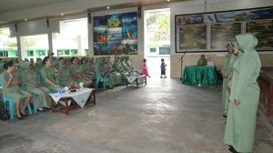 Lanjut dalam sambutan Ketua Persit Sebagai Istri Prajurit, Ibu-ibu memiliki peran ganda yakni sebagai pendamping suami, ibu rumah tangga dan anggota organisasi. Sebagai istri prajurit wajib mendukung tugas suami dalam mengemban tugas dengan baik. Sebagai ibu rumah tangga yang sangat berperan dalam pembinaan anak, Ibu-ibu juga harus mewaspadai hal-hal yang dapat merusak generasi muda. Semoga Tuhan Yang Maha Esa selalu meridhoi setiap langkah dan pengabdian kita kepada keluarga, masyarakat, Bangsa dan Negara yang kita cintai, Tutup sambutannya.