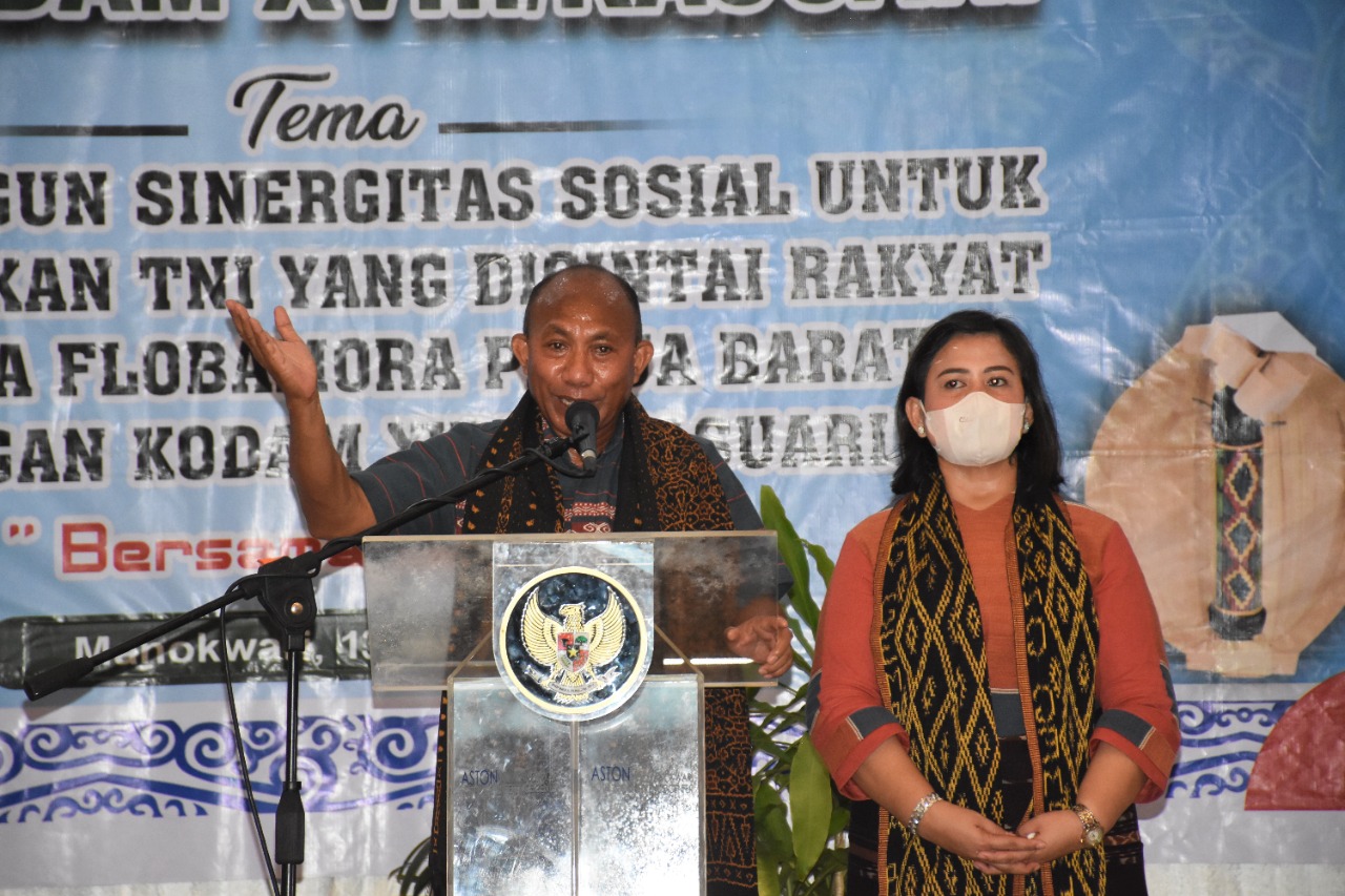 Manokwari. kodam18kasuari.tni-ad.mil.id – Pangdam berpesan kepada masyarakat Flobamora NTT yang ada di Papua Barat agar bisa menyatu dan mampu memberikan kontribusi yang lebih dimanapun berada. Lakukan interaksi dengan baik dengan seluruh masyarakat, komponen bangsa lain baik itu dari pedalaman sampai dengan kota, strata Pemerintahan maupun dalam struktur adat termasuk keagamaan termasuk urusan-urusan lain untuk kebaikan dan kemajuan bersama.