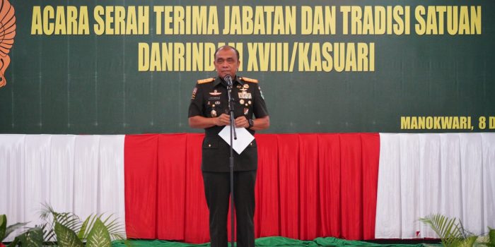 Keinginan ini disampaikan Pangdam dalam sambutannya saat memimpin langsung jalannya acara Serah Terima Jabatan (Sertijab) dan tradisi satuan Danrindam XVIII/Kasuari, yang berlangsung di Aula Makodam, Trikora, Arfai 1, Manokwari, Papua Barat, pada Jumat (8/12/2023).