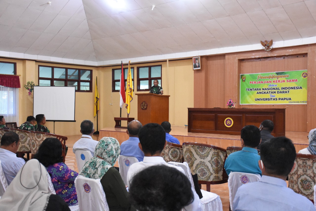 “Dimana peran tersebut adalah tentang bagaimana apa yang bisa kami kerjakan sebagai lembaga pendidikan tinggi dan apa yang bisa didedikasikan oleh Kodam kepada kami sekaligus dalam rangka membangun SDM yang ada di tanah Papua ini, serta mewujudkan keamanan dan kenyamanan di tanah Papua serta membangun SDM yang unggul dan maju,” ucap Rektor Unipa.