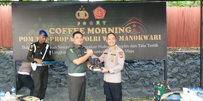 Manokwari. kasuari18-tniad.mil.id – Pomdam XVIII/Kasuari dan Propam Polda Papua Barat menyelenggarakan acara Coffee Morning bagi komunitas penegak hukum internal institusi TNI-Polri yang ada diwilayah Manokwari, Papua Barat, pada Selasa (14/5/2024).