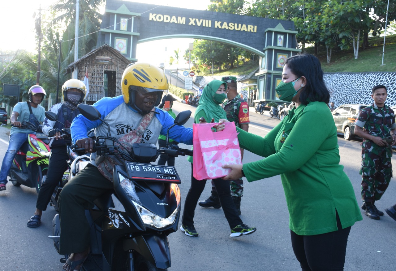 Prajurit dan Persit Kodam XVIII/Kasuari Stop Pengendara Jalan, Ternyata Berbagi Takjil