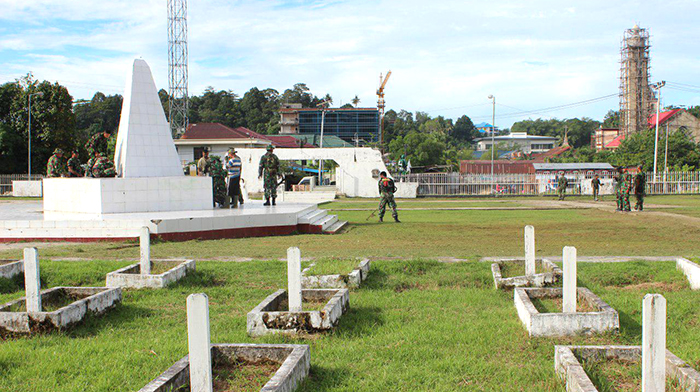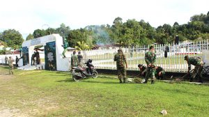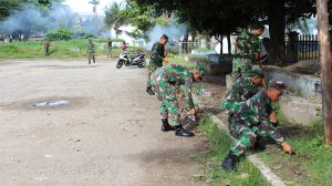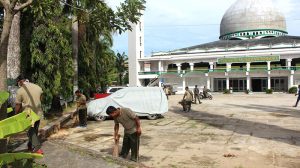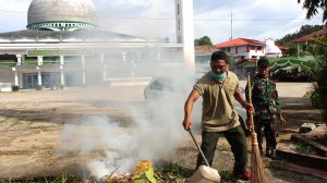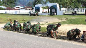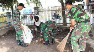 Sorong – Pasiter Korem 171/PVT Mayor Inf Antonius Sagala, memimpin kegiatan Karya Bhakti dalam Rangka HUT Korem 171/PVT Ke-55 tahun 2018 yang dihadiri oleh Danramil Kota 1704-01 Mayor Inf Triyana, Danramil 1704-13 Mayor Chb Sumardi, Prajurit dan PNS Jajaran Korem 171/PVT,yang bertempat di TMP Tri Jaya Sakti, Masjid Al- Akbar, Terminal Sorong Kota, Sorong-Papua Barat, Jumat (27/04/18).