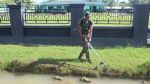 Sorong – H-1 menjelang Hari Raya Idhul Fitri 1439H Prajurit Denzipur 13/PPA melaksanakan pembersihan pangkalan dan Pembersihan di sekitar rumah masing-masing , dan pemasangan baner tntang ucpan Slmat hari raya Idul fitri 1439 H oleh Komandan Denzipur 13/PPA dan segenap anggota beserta Persit KCK ranting BS VI, Kamis (14/06/18).