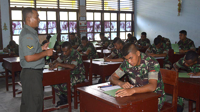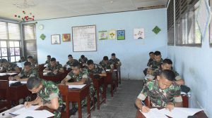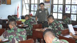 Sorong – Prajurit Yonif Raider Khusus 752/VYS yang berada di kota Sorong melaksanakan tes psikologi yang diikuti sebanyak 110 orang prajurit sebagai persyaratan untuk mengikuti Pendidikan Raider TA 2018 yang dilaksanakan di Pusdikpassus Batujajar, Bandung. Tes psikologi ini dilaksanakan di ruang kelas SMA Moria Kota Sorong pada Jumat (07/07/2018).