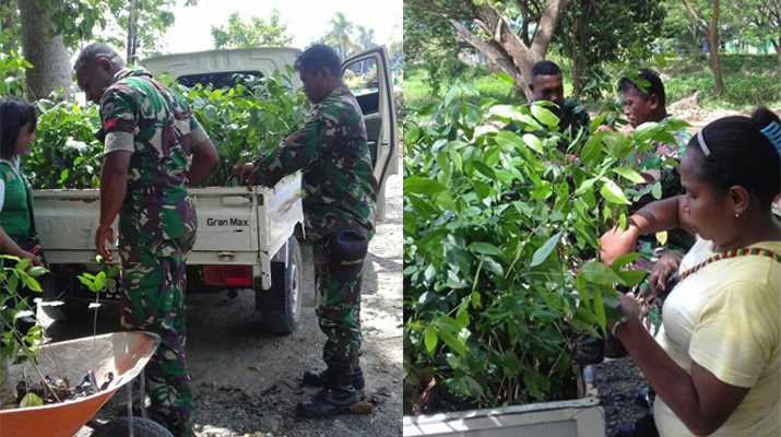 Untuk itu, Sertu Theo Daniel Sinergitas Babinsa Koramil 1704-03/Saonek bersama Dinas kehutan Kabupaten Raja Ampat bapak Ronald melaksanakan kegiatan pemindahan pohan yang akan ditanam di kampung Sawandarek dan kampung kapsawar Distrik Kota Waisai, Kabupaten Raja.