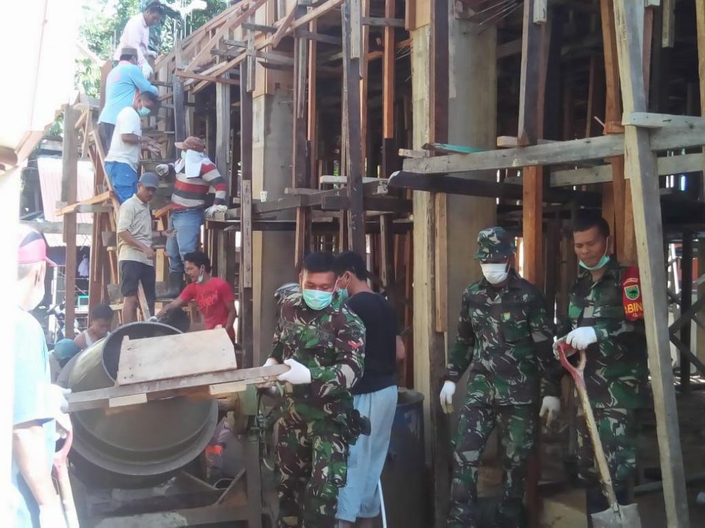 Sorong-Sebagai satuan komando kewilayahan harus mengetahui kondisi wilayahnya dan harus selalu siap membantu warganya yang membutuhkan bantuan. Seperti halnya yang dilakukan oleh puluhan anggota Kodim 1802/Sorong di Pimpin Serma Zaini bersama-sama dengan warga setempat yang melakukan kerja bakti pengecoran Masjid At-Taubah yang berada di Jalan F. Kalasuat RT. 2 / RW. 6, Sorong Utara, Kelurahan Malaingkedi, Kecamatan Sorong, Kota Sorong, Kamis (11/04/2019).