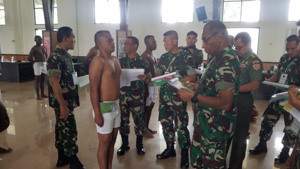 Pernyataan yang ditujukan kepada para anggota panitia seleksi tersebut, disampaikan Pangdam XVIII/Kasuari selaku ketua, usai melakukan pengecekan dan penilaian langsung terhadap 44 orang Putra Daerah Asli Papua dalam Sidang Pemilihan Calon Bintara (Caba) Prajurit Karier (PK) Pedalaman TNI AD Tahun Anggaran (TA) 2019, Sub Panitia Pusat (Sub Panpus) Kodam XIII/Kasuari, Senin (26/8/2019) di Aula Markas Kodam (Makodam), Manokwari, Papua Barat.