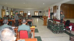Sorong – Kasrem 171/PVT Kolonel Inf Dian Sundiana, S.E, memimpin pelaksanaan Rapat Penyusunan Rencana Kebutuhan Peyelenggaraan Logistik dan Pendataan Logistik TA 2019 dihadiri oleh para Kasi Korem 171/PVT dan para Komandan Satuan dan Ka Balak Aju jajaran Korem 171/PVT bertempat di Aula Makorem 171/PVT Jl. Pramuka No. 1 Sorong-Papua Barat Kamis (31/05/2018).