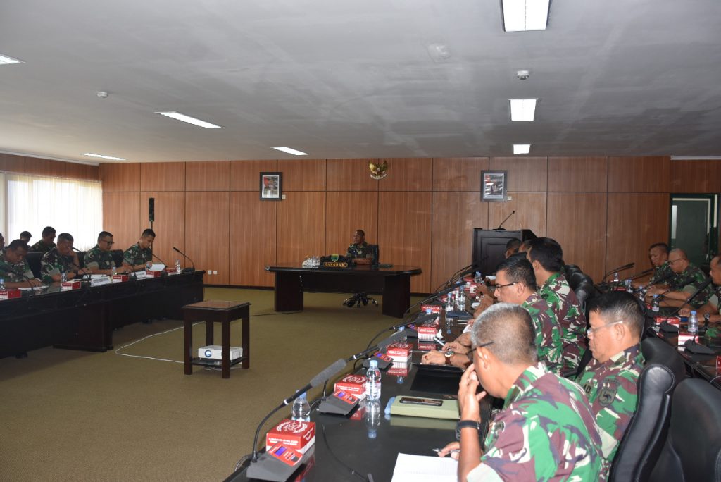 Manokwari – Bertempat Ruang Yudha Kodam XVIII/Kasuari Mayjen TNI Joppye Onesimus Wayangkau memimpin rapat perencanaan peresmian Kodim 1806/Bintuni dan Yonif 761 Warmare yang dihadiri Kapok Sahli Pangdam, Pamen Ahli Pangdam, LO TNI AL dan AU, para Asisten dan Kabalak Kodam XVIII/Kasuari, Jumat (26/07/2019).