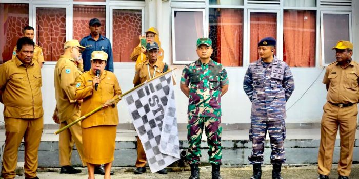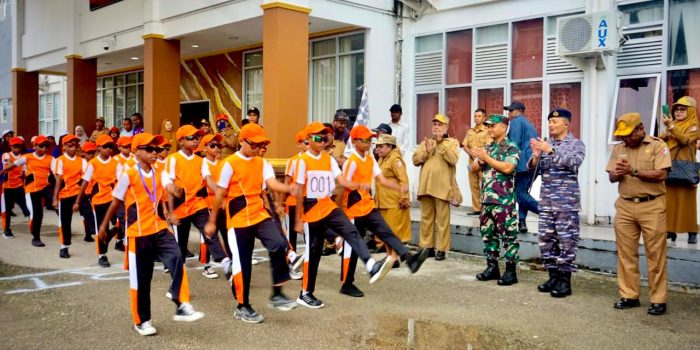 Korem 182/Jazira Onim-Danrem 182/Jazira Onim, Kolonel Inf Aswin Kartawijaya yang di wakilkan Kasi Teritorial, Mayor Arm Hendriyana, Melepas Lomba Gerak Jalan yang di ikuti Ratusan Pelajar se-Kota Fakfak, bertempat di Lapangan Apel Kantor Pemkab Fakfak, Senin,(19/8/2024)