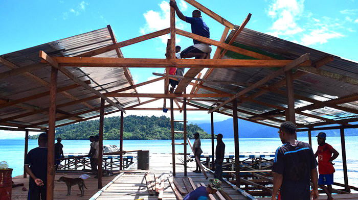 Sorong, Kaliam – Perehaban jembatan tambatan perahu selain merupakan sasaran tambahan program TMMD Ke-99 juga menjawab keluhan masyarakat setempat dikarenakan jembatan tersebut sudah rapuh ungkap Perwira Pengawas (Pawas)  TMMD KE-99 Kapten Inf Salim, Sabtu (29/07/2017)