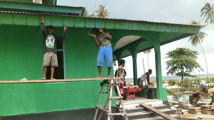Nusaulan – Bertempat di Kampung Nusaulan, Distrik Buruway, Kab. Kaimana kegiatan Over Prestasi oleh anggota satgas TMMD dengan membenahi kondisi Masjid di kampung Nusaulan, Kamis (01/11/ 2018).