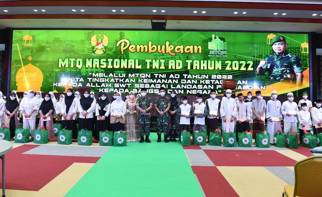 JAKARTA, tniad.mil.id- Musabaqah Tilawatil Qur’an Nasional (MTQN) TNI AD tahun 2022 diharapkan memunculkan qari-qariah terbaik dari prajurit TNI AD, yang mampu berkontribusi dalam membangun kualitas sumber daya umat yang unggul, kompetitif, dan berkarakter Islami, sebagaimana akhlak Rasulullah SAW.