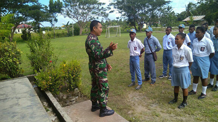 Dihadapkan dengan kondisi tersebut, maka Babinsa Koramil 1704-07/Seget Serka Gede merasa terpanggil hatinya untuk meluangkan waktu memberikan pelajaran Wasbang dan Nasionalisme siswa-siswi di SMA Negeri 6 Seget Kab. Sorong.