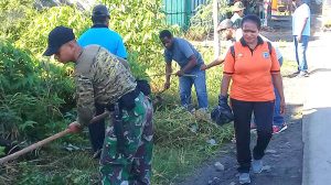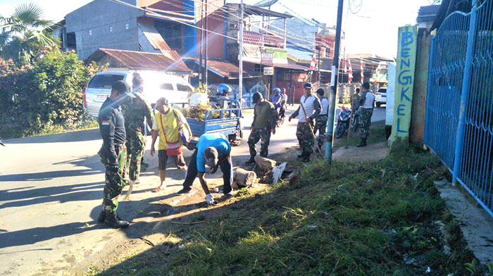 Sorong – Bertempat di Kelurahan Rufei Jalan Yan Mamoribo, Danramil 1704-02/Sorong Barat Mayor Chb Sumardi beserta anggota melaksanakan gotong royong bersama Staf Kadistrik Sorong Barat beserta masyarakat dalam rangka menyambut HUT RI ke-73 untuk menciptakan lingkungan yang bersih dan nyaman, Senin (13/08/2018).
