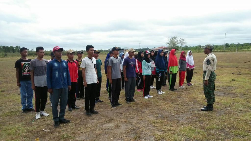 Fakfak – Babinsa Koramil 1803-05/Bomberay Pelda Suroto, Serda Salam, Serda P. Nahuway, Kopda Khadafi dan Pratu Huninhatu, melaksanakan pembinaan dan pelatihan kepada anggota Paskibraka Distrik Bomberay yang diikuti oleh 27 orang bertempt di Lapangan Sepakbola Kampung  Onim Sari, SP3 Distrik Bomberay, Kabupaten Fakfak, Provinsi Papua Barat, Senin (29/07/2019).