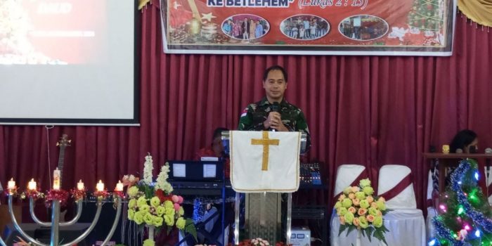 Kegiatan Ibadah Bersama Perayaan Jemaat GSJA “Kemah Daud” Bukit Sikoh-Kumurkek mengambil tema “Marilah Sekarang Kita Pergi Ke Betlehem”. Lettu Ckm Kristofel Desiano sebagai Dokter Satgas Yonif 762/VYS yang juga merupakan selaku tertua umat Nasrani Satgas Yonif 762/VYS mewakili menghadiri kegiatan tersebut mengungkapkan bahwa merayakan Natal bersama warga dapat mempererat tali persaudaraan.