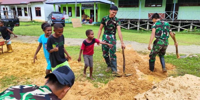 “Pengerjaan lapangan ini bertujuan untuk membantu pihak sekolah dalam melaksanakan pembangunan lapangan upacara bagi siswa siswi SD Inpres 116,” imbuh Wadanpos.