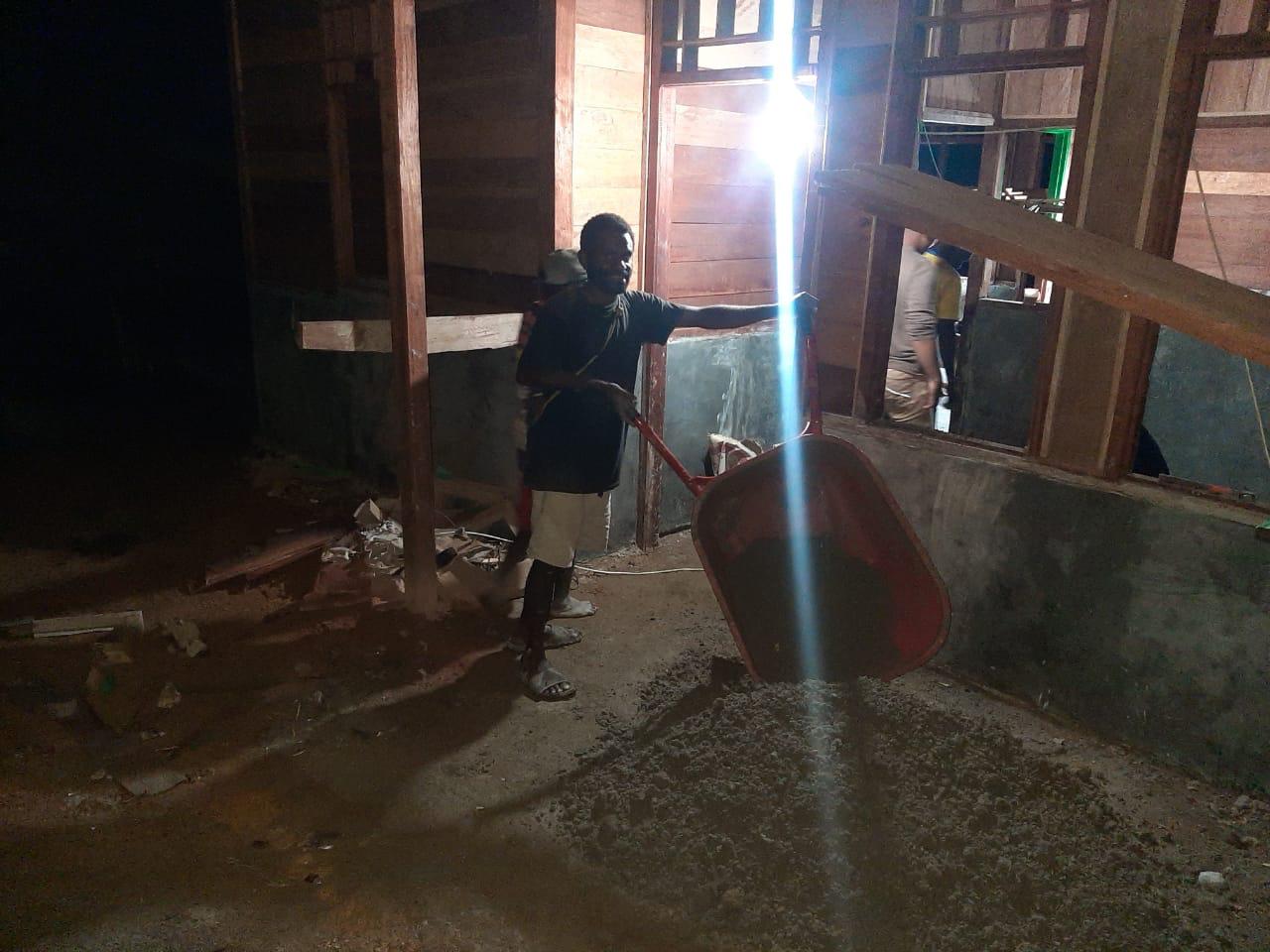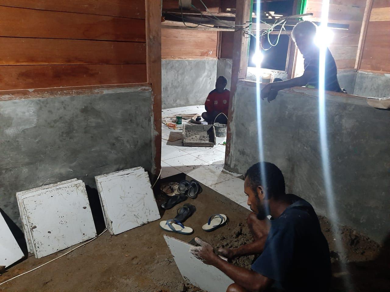 “Rumah yang akan dimiliki oleh Bapak Imanuel Krimadi (48) beserta isteri dan ketiga anaknya sebentar lagi akan selesai dibangun. Dimana Bapak Imanuel adalah salah satu warga Kampung Wendi Distrik Sawiat yang sehari hari bekerja sebagai buruh lepas dan tidak setiap hari mendapat pekerjaan”.