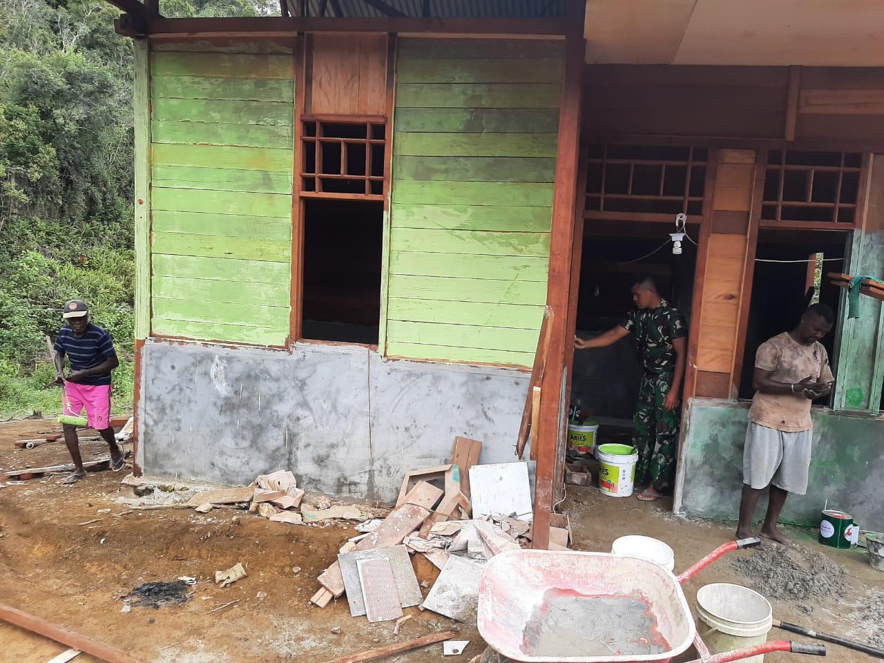 Ia menuturkan diilokasi TMMD saat ini, anggota Satgas bersama 5 orang masyarakat Kampung Wendi terlihat sedang sibuk menyelesaikan rumah yang menjadi sasaran fisik TMMD ke-112.