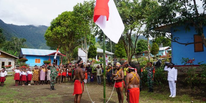 Demi merayakan Kemerdekaan Republik Indonesia di daerah terpencil, Anggota Satgas TMMD Kodim 1801/Manokwari dan masyarakat melaksanakan Upacara HUT Republik Indonesia Ke-79 di Lapangan Kampung Kwau Distrik Mokwam, Kabupaten Manokwari, Provinsi Papua Barat, Sabtu (17/08/2024).