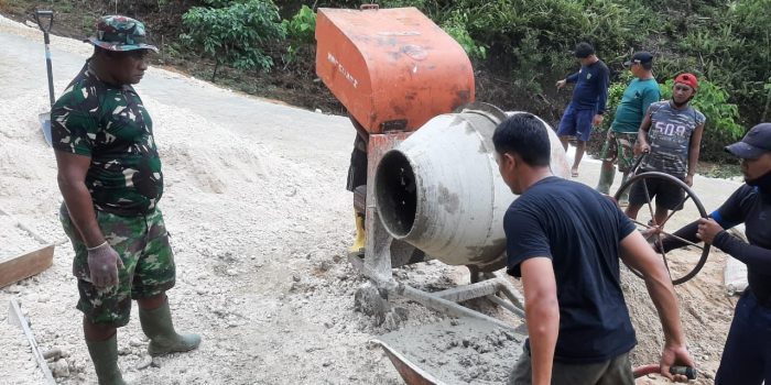 Dalam pengerjaanya Satgas TMMD dari TNI bersama masyarakat sebanyak 20 orang bahu membahu menyelesaikan pengecoran jalan lingkungan yang menjadi salah satu sasaran fisik TMMD Sorsel.