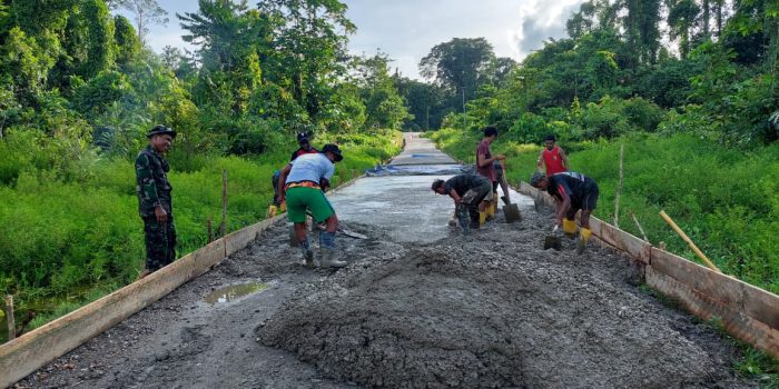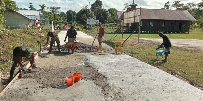 warga Kampung Yabore sangat antusias untuk terlibat dalam merealisasikan pengecoran jalan yang selama ini sangat diimpikan,” ujar Kapten Arh Arlani