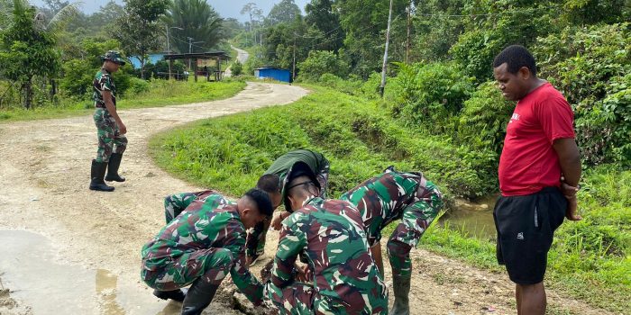Maybrat – Peduli dengan akses jalan yang sering dilalui warga, Satgas Pamtas RI-PNG Kewilayahan Papua Barat Daya Yonif 762/VYS Pos Bori menggelar kegiatan perbaikan jalan di Kampung Bori, Distrik Aifat, Kabupaten Maybrat. Minggu (02/02/2025)