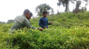 Teminabuan – Babinsa Kampung Bumi Ajo Distrik Moswaren Koramil 1704-04/Teminabuan, Sertu Sudiyanto Melaksanakan pendampingan Panen Cabai jenis cabai rawit milik Bapak Caswito salah satu petani di kampung Bumi Ajo Distrik Moswaren Kabupaten Sorong Selatan, Rabu (21/02/2018)